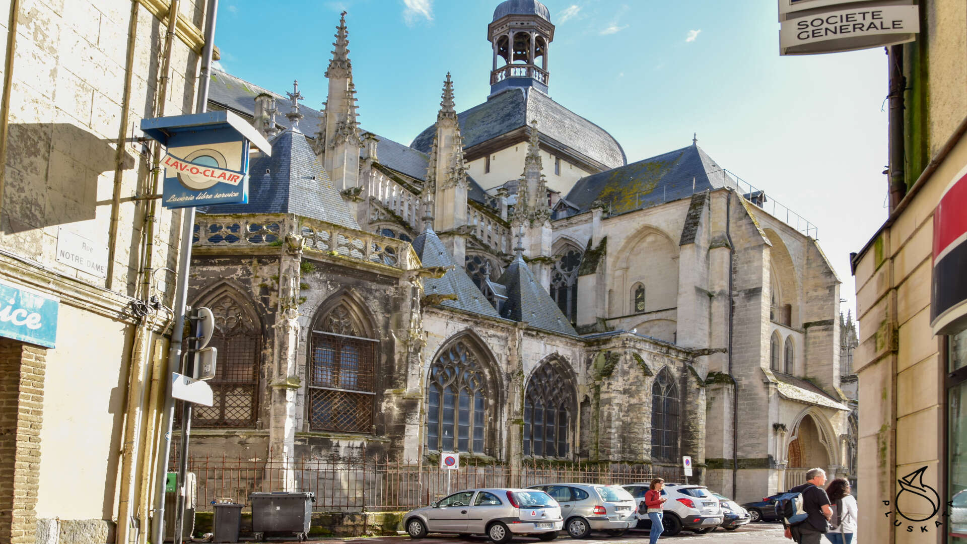 We are visiting garden, which the guide translates as “Hanging Gardens” (Les Jardins Suspendus) and in fact it is a botanical garden mainly of tropical plants in greenhouses but not only and a large experimental center that studies plants all over the world. The garden is on a hill outside the city (approx. 25 min). Then we go down through the garden of St. Roch and visit the church of St. Joseph – a concrete building from the outside, and inside the interior is sparkling with colors – the light coming through the stained glass windows in the walls and ceiling is reflected throughout the church, the pews for the faithful are set around the altar. A completely different church than the ones we are used to. The next stop is the market hall, but more like our Polna than an ordinary bazaar. Permanent built-up stands, and the prices are rather high. We go further – the next point of the route is the Notre-Dame Cathedral. The historic cathedral from the 16th century is on the UNESCO World Heritage List, but both the facade and the interior are not impressive. After that, only the MuMa Museum of Modern Art – there is a painting exhibition devoted to the wind right now – worth seeing. We have 20 minutes for that (they close at 19).