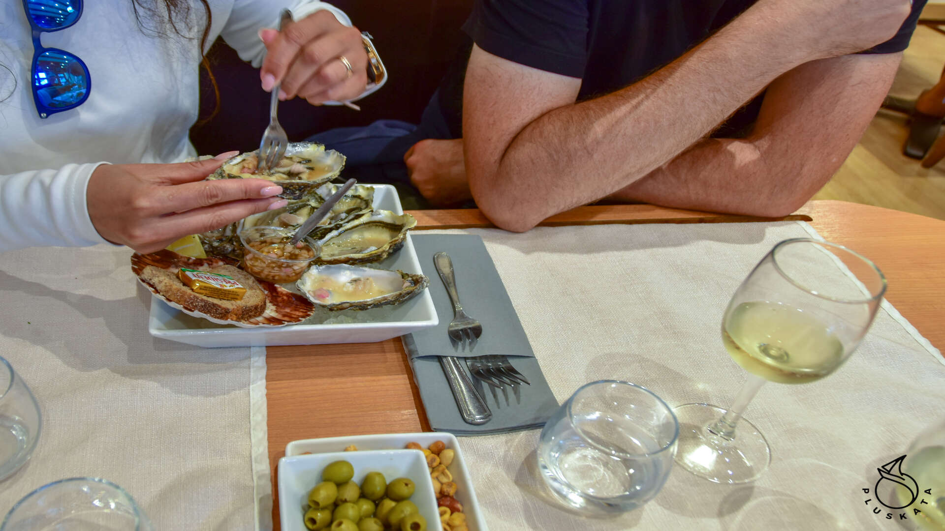 The center is not big and apart from two little ancient churches, the beach is impressive. We go to the pier, we see the “monument” made of bent and painted red sheet metal, the fish market is closed and we return to the yacht. For dinner, chorizo casserole and salad with olives. Delicious.
