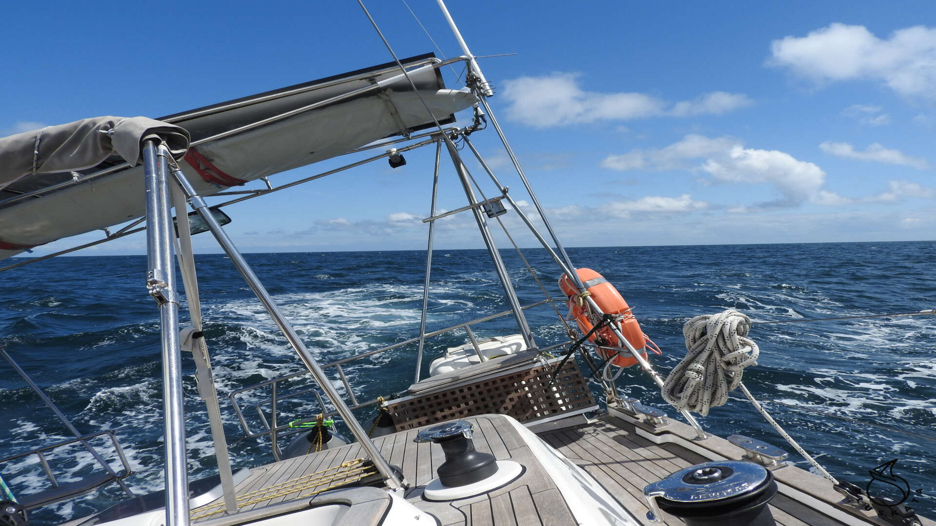 We go out to sea. For 3 hours we have good current direction and good wind, so we sail 6-7kn. Then the current changes to the opposite wind and disappears, so when we start to go back, we turn on the engine. The weather is nice, so we do the laundry and put the dryer in the stern – it dries up by the evening.