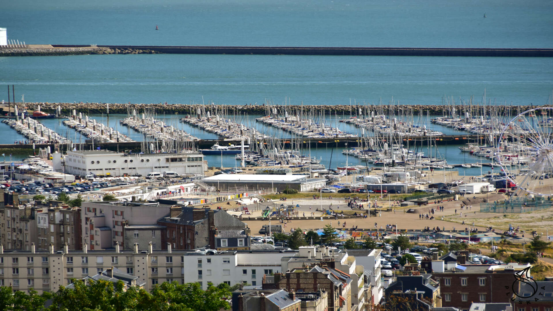 We leave at 5:30 before breakfast. It blows 4-5B and a compatible current is added to it – a fairy tale. We repair the sails when the list is above 20º. In the afternoon, as soon as the current turns to the opposite side, the wind disappears, so we start the engine. After the power is unscrewed, we set sails again. It starts to rain in front of Dieppe. We enter Dieppe in the rain at 5:30 pm. First we moor the longside, but the port staff comes and asks us to move to another place. We stand stern to the pier. After mooring, it stops raining so we go for a walk around the city. The water is low so the city is really high up. The city is beautiful.