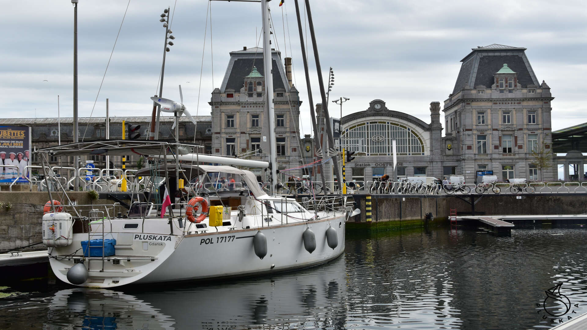 In the morning we are still sailing along the huge field of windmills – it is about 20mm long and stretches from the Netherlands to Belgium. 5B blows so we reef the mainsail. We cross the approach lanes and approach the entrance to the lock to the marina. The entrance to the port has three lights, red, white and green, in different configurations. While waiting for the lock to open, we eat breakfast. The Merkator marina lock is 2-stage. First you enter the first lock, the lock has double gates, first the first one opens, then we go up and the second opens, behind the lock there is a drawbridge, behind the bridge there is another stop and one drawbridge closes and the other opens. In the lock, we get information on where to stand with the toilet codes, marina plan and other useful information. We moor at the A-01 site. The price for the marina is electricity, water, toilet, showers. The washing machines are coin-operated with instructions in Belgian.