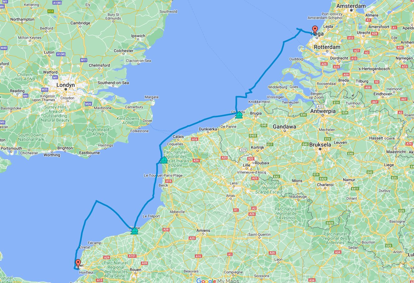 Route: Sheveningen – Osdend – Boulogne sur mer – Dieppe – La Havre