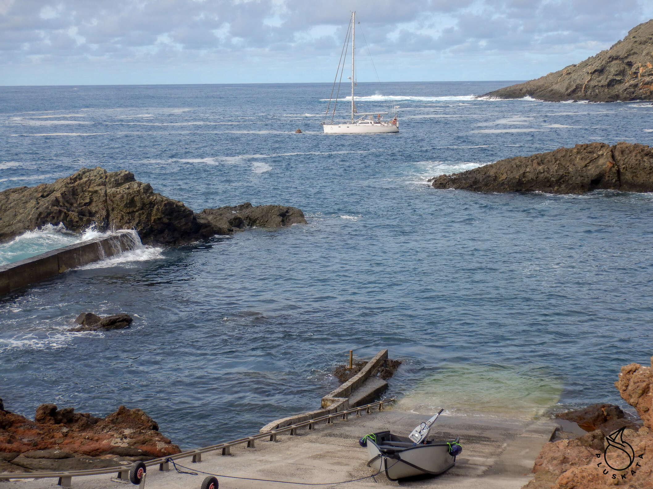 In the morning, the middle yacht departs from the raft, and we switch to places with the last yacht (they stay longer, then go to the Canaries and across the Atlantic to the Caribbean). Around 10:30 am the rest of the crew arrive. I’m going to check us in, hand over the toilet card and off we go. It blows about 20-25 kn. We sail to a place where cruise ships come to watch sperm whales. We can’t see anything, so after reaching the end of the island, we put ourselves on the right course. In the evening the wind weakens, but we do not give up. We sail today 60Nm.