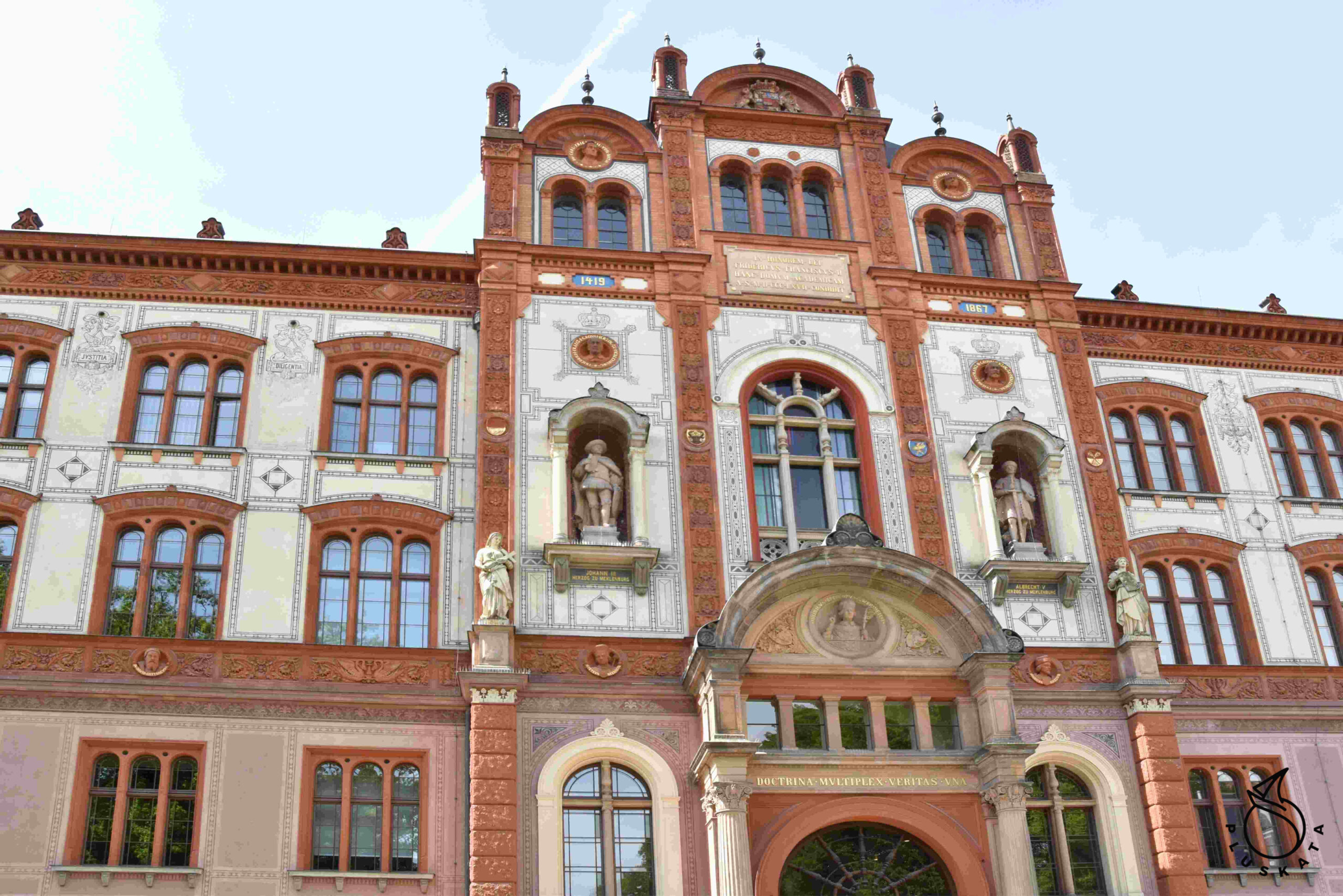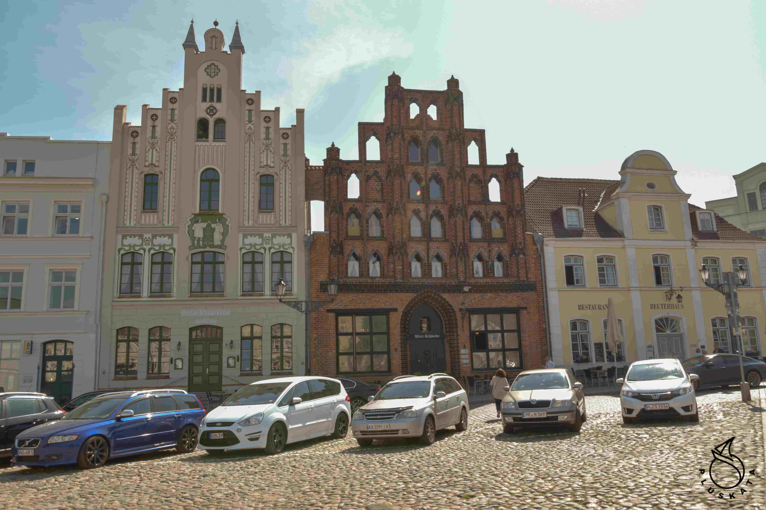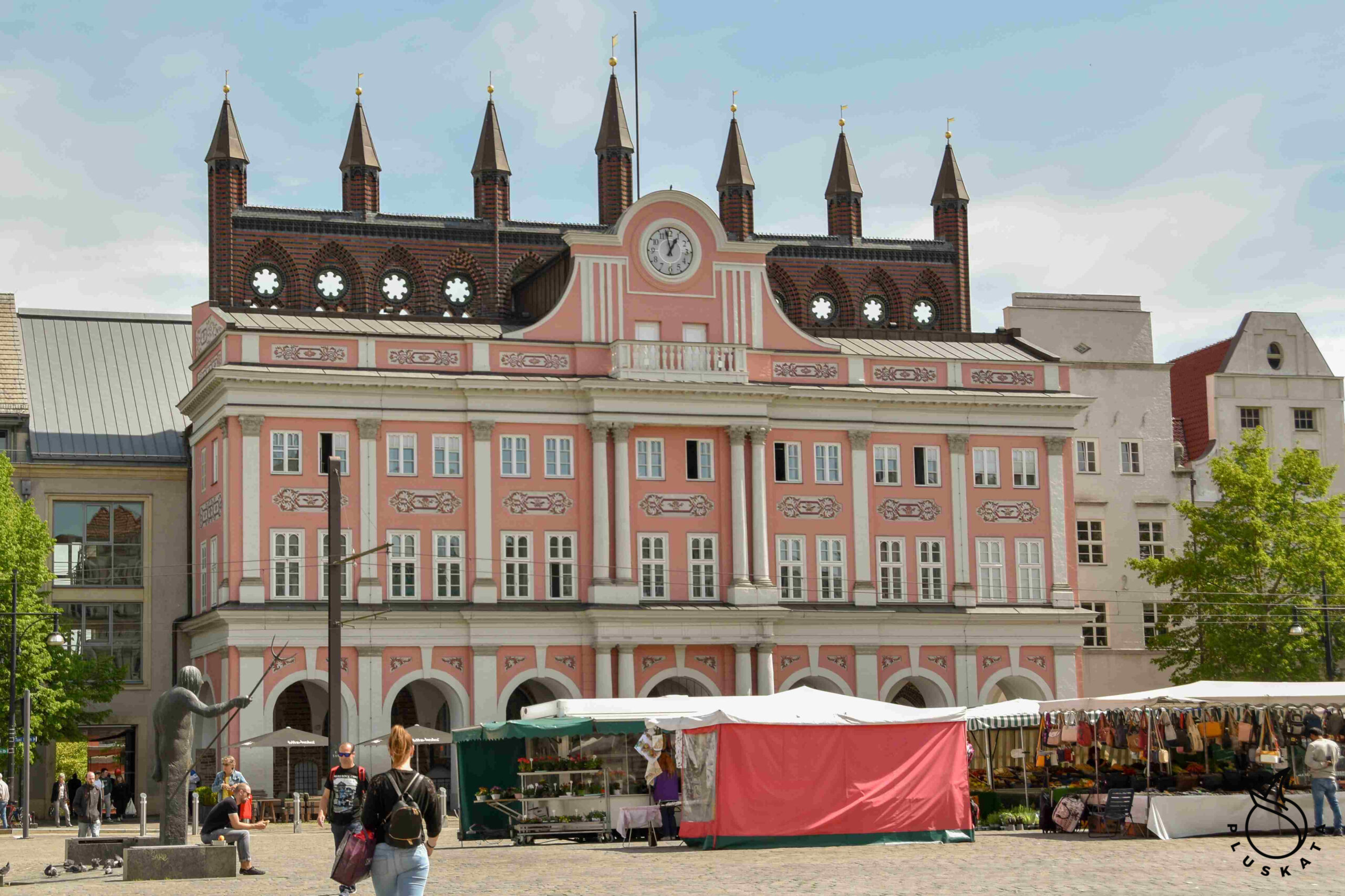We go to Rostock by S-ban. All this is in Rostock, a ticket with 1 change costs 2.4 €. S-ban, on the occasion of the bridge renovation, does not commute to the center, so we have to change to the tram. It’s Monday, so all museums are closed. In communication and in places related to medicine (clinics, pharmacies, etc.), masks must be worn, but they do not have to be FFP2. The sightseeing list includes the Old Town, University Square, city walls, town hall, St. Mary’s Church with an astronomical clock.
