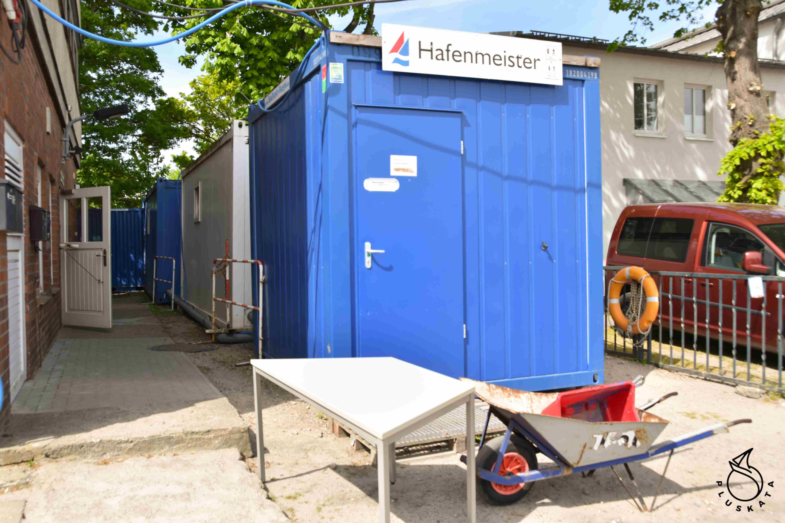 At 9:20 am we arrive in Warnemünde and dock in the Alter Strom marina on the river. First, we try to enter the dolphins, but the dolphins do not even reach the cables, so we retreat and stand longside closer to the entrance to the port. Some nice man is taking the ropes from us. After retrieving it with a phone, the bossman appears in the barrack, which is a temporary office. The price includes electricity and water, access to toilets and showers with hot water. You can pay by credit card.